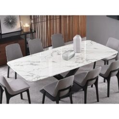 A timeless, sturdy wooden table with a modern or rustic design, ideal for family meals and gatherings.