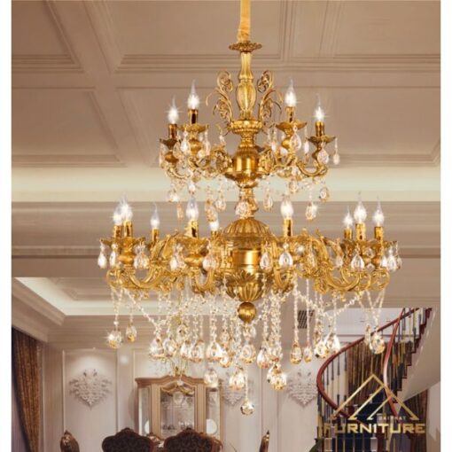 A statement chandelier that adds sophistication and creates a cozy, warm atmosphere in the dining room.