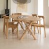 A statement chandelier that adds sophistication and creates a cozy, warm atmosphere in the dining room.