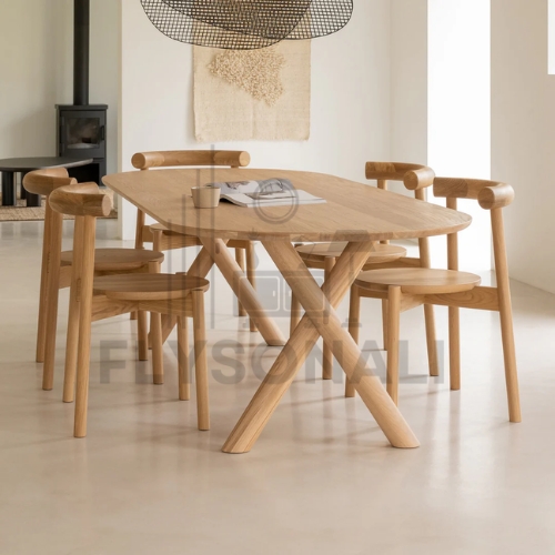 A timeless, sturdy wooden table with a modern or rustic design, ideal for family meals and gatherings.